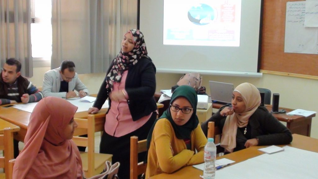 اليوم الخامس على التوالي استمرار فاعليات دورة اعداد المعلم الجامعي رقم 36 تحت رعاية الدكتور عباس منصور رئيس الجامعة والدكتور محمود خضاري نائب رئيس الجامعة للدراسات العليا والبحوث والدكتور عبدالرحيم سلامة عميد كلية التربية بقنا والدكتور حسين عبدالباسط وكيل الكلية للدراسات العليا والبحوث تمت اليوم الأربعاء الموافق 30/1/2019 فاعليات اليوم الخامس على التوالي دورة اعداد المعلم الجامعي رقم 36 للمعيدين والمدرسين المساعدين بكليات الجامعة واقيمت المحاضرات على ثلاث مجموعات المحاضرات الأولى تمت من الساعة العاشرة صباحاً حتى الساعة الثانية عشر ظهراً ثلاثة محاضرات على ثلاثة مجموعات : 1-( المجموعة A ) بقاعة التدريب رقم 1 محاضرة بعنوان اقتصاد المعرفة أدارت المحاضرة د. فاطمة محمد البردويلي ، 2-(المجموعة B ) بقاعة التدريب رقم 2 محاضرة بعنوان أخلاقيات مهنة التدريس أدار المحاضرة د. عبدالناصر أحمد خليل ، 3-(المجموعة الثالثة C) بقاعة التدريب رقم 3 محاضرة بعنوان تفعيل الأنشطة الطلابية أدار المحاضرة أ.د محمد النصر حسن ، وأقيمت من الساعة الثانية عشر ظهراً حتى الساعة الثانية ظهراً ثلاثة محاضرات على ثلاثة مجموعات : 1-(المجموعة A ) بقاعة التدريب رقم 1 محاضرة بعنوان بعنوان تفعيل الأنشطة الطلابية أدار المحاضرة أ.د محمد النصر حسن ، 2-(المجموعة B ) بقاعة التدريب رقم 2 محاضرة بعنوان القيادة التربوية أدار المحاضرة أ.م.د محمد صبري الأنصاري ، 3-(المجموعة C ) بقاعة التدريب رقم 3 محاضرة بعنوان أخلاقيات مهنة التدريس أدار المحاضرة د. عبدالناصر أحمد خليل ، وأقيمت من الساعة الثانية ظهراً حتى الساعة الرابعة عصراً ثلاثة محاضرات على ثلاثة مجموعات : 1- (المجموعة A) بقاعة التدريب رقم 1 محاضرة بعنوان أخلاقيات مهنة التدريس أدار المحاضرة د. عبدالناصر أحمد خليل ، 2- (المجموعة B) بقاعة التدريب رقم 2 محاضرة بعنوان بعنوان تفعيل الأنشطة الطلابية أدار المحاضرة أ.د محمد النصر حسن ، 3- ( المجموعة C) بقاعة التدريب رقم 3 محاضرة بعنوان القيادة التربوية أدار المحاضرة أ.م.د محمد صبري الأنصاري – هذا وقد انتهت المحاضرات لهذا اليوم في تمام الساعة الرابعة عصراً