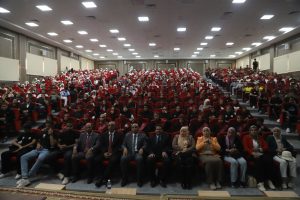 ونقل الدكتور اشرف موسى نائب رئيس الجامعة لشئون التعليم والطلاب تحيات رئيس الجامعة للحضور واكد أهمية هذه الذكرى المجيدة في تسليط الضوء على دور مصر التاريخي والمحوري كمهد للحضارة وحصن للأمن والأمان للعالم العربي ووجه التحية للقيادة السياسية على ما تشهده البلاد من تطور ملموس في كافة المجالات