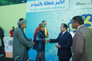 وثمن الدكتور أحمد عكاوي رئيس الجامعة جهود الدولة المصرية فيما تطلقه من مبادرات بقيادة فخامة الرئيس عبد الفتاح السيسي في دعم الطلاب والأسر الاولي بالرعاية والأكثر احتياجا وتخفيف العبء عن كاهلهم، ومنها حملة صندوق «تحيا مصر» لتوفير 2 مليون قطعة ملابس والتي تعد أكبر حملة كساء ينظمها الصندوق لرعاية طلاب الجامعات الحكومية المصرية تحت عنوان “دكان الفرحة 2 مليون فرحة” ، وتوجه رئيس الجامعة بالشكر لصندوق تحيا مصر ولجميع القائمين علي تنفيذ هذه المبادرة.