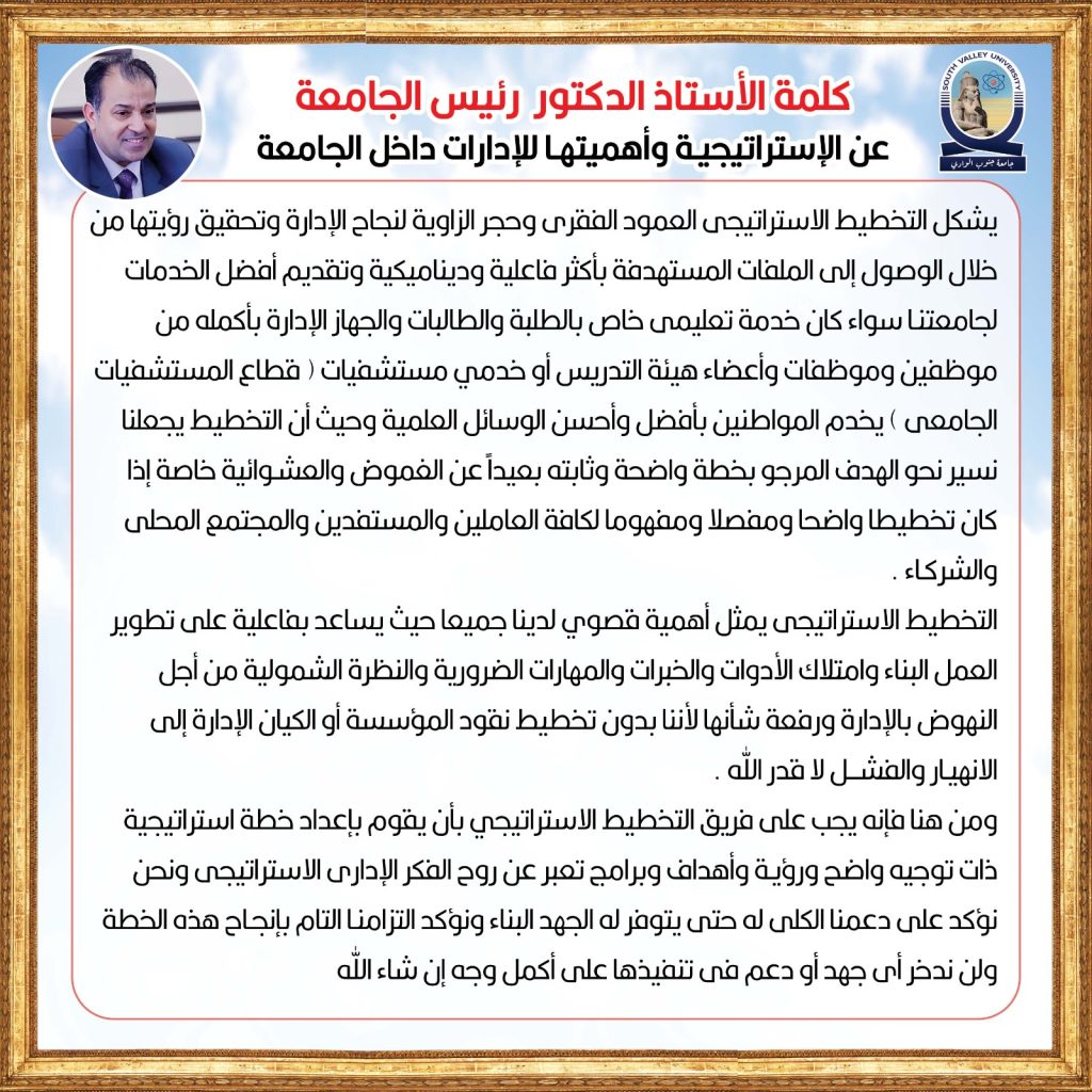 كلمة أ.د رئيس الجامعة
