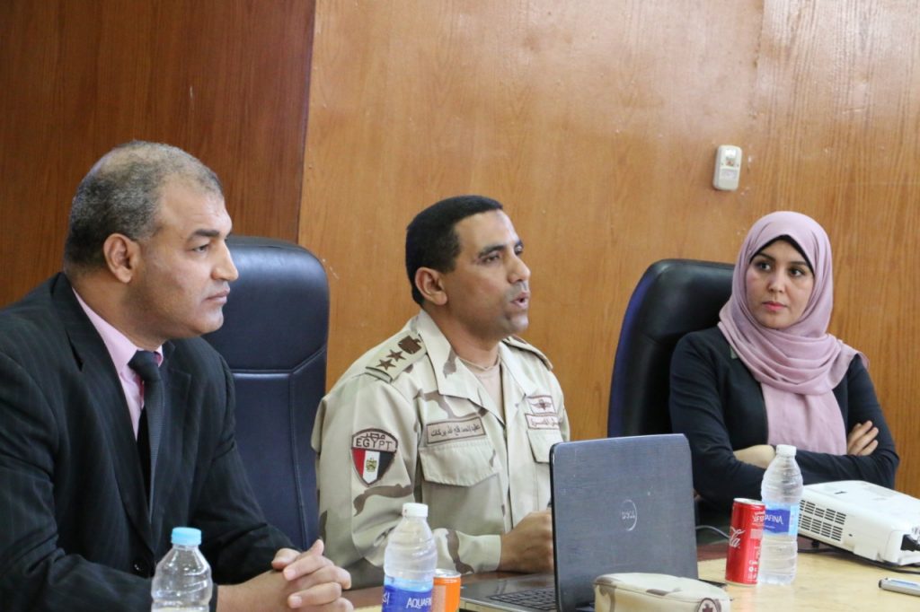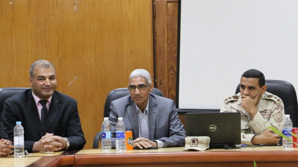 شهد الدكتور عباس منصور رئيس جامعة جنوب الوادي نموذج محاكاة الجامعة المصرية في نسخته الثالثة ندوة بعنوان “تحديات الأمن القومي المصري وأثرها على بقاء الدولة” والتي ألقاها العقيد أحمد فتح الله مدير التربية العسكرية بالجامعة. بدأت الندوة بحديث عن القوات المسلحة المصرية ودورها في تحقيق وحفظ الأمن على المستويين الداخلي والخارجي وأهمية مصر على الخريطة الإقليمية والدولية. كما تطرق إلى الحديث عن دوائر الخطر بالمنطقة العربية وكيف نجحت الدولة المصرية في إدارة العديد من الملفات في المنطقة بنجاح. من ناحية أخرى أوصى العقيد بضرورة خلق الثقة في القيادات بمختلف مواقعهم حيث أن للقيادة دائماً منظور أوسع ورؤية أكبر لكافة القضايا والأمور من جوانبها الأمنية، والاقتصادية، والاجتماعية والسياسية. تخلل الحديث بعض المناقشات وقام بالرد على الكثير من التساؤلات التي طرحها المتدربين بالنموذج. وفى نهاية الحديث قام الدكتور عباس منصور رئيس الجامعة بتوعية المتدربين بضرورة نقل ما تم تعلمه خلال هذه الندوة للطلاب وشدد على ضرورة المشاركة في تلك اللقاءات التي من شأنها رفع الوعى لديهم باعتبارهم قيادات الجامعة في المستقبل. وفى الختام شكر رئيس الجامعة العقيد مدير التربية العسكرية على استجابته للمشاركة في تقديم هذه الندوة، وعلى دوره المتميز في التوعية السليمة للطلاب من خلال دورات التربية العسكرية بالجامعة. حضر الندوة من فريق الاشراف على نموذج المحاكاة بالجامعة الدكتور حسين عبدالباسط ، الدكتورة نجوى يسين الهوارى ، مدرس مساعد محمد رمضان العتمانى ؛ وعدد من شباب أعضاء هيئة التدريس من خريجي النسختين الأولى والثانية لنموذج المحاكاة،