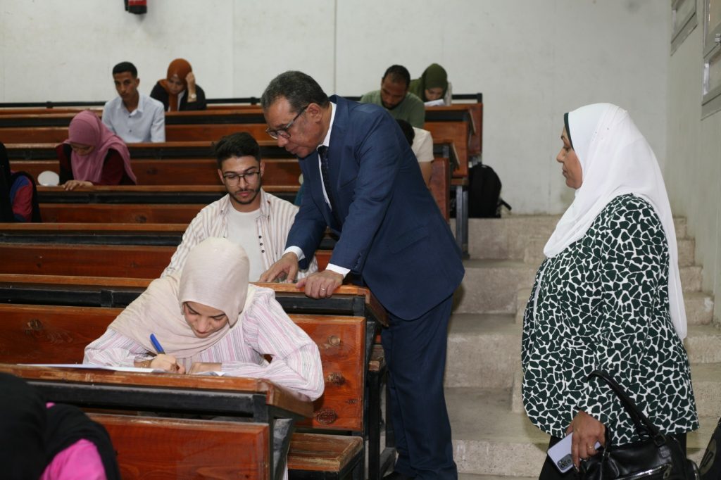 في اطار توجيهات الدكتور احمد عكاوي رئيس جامعة جنوب الوادي بالمتابعة المستمرة لأعمال الامتحانات بكليات الجامعة، وفي ضوء اعمال اللجنة العليا لمتابعة اعمال الامتحانات بالجامعة للفصل الدراسي الثاني للعام الجامعي ٢٠٢٤/ ٢٠٢٥ برئاسة الدكتور احمد عكاوي رئيس الجامعة، وعضوية كلا من الدكتور محمد سعيد نائب رئيس الجامعة لشئون خدمة المجتمع وتنمية البيئة، و الدكتور محمد وائل عبدالعظيم نائب رئيس الجامعة لشئون الدراسات العليا والبحوث