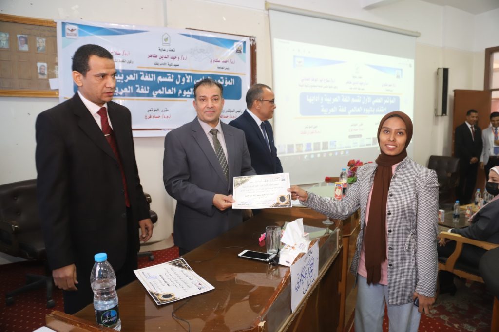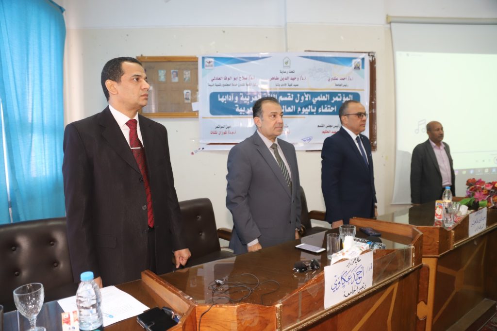 شهد الدكتور أحمد عكاوي رئيس جامعة جنوب الوادي انطلاق فعاليات المؤتمر العلمي الأول لقسم اللغة العربية وآدابها بكلية الآداب وذلك احتفاء باليوم العالمي للغة العربية بحضور الدكتور عباس منصور رئيس الجامعة الأسبق والدكتور محمد وائل عبد العظيم نائب رئيس الجامعة لشئون الدراسات العليا والبحوث والدكتور وحيد الدين طاهر عميد كلية الآداب والدكتور عبد الباري حمدان عميد كلية الحقوق والدكتور صلاح أبو الوفا العادلى وكيل الكلية لشئون الدراسات العليا والبحوث والدكتور حمد الله عبد الحكيم رئيس مجلس قسم اللغة العربية بكلية الآداب ورئيس المؤتمر