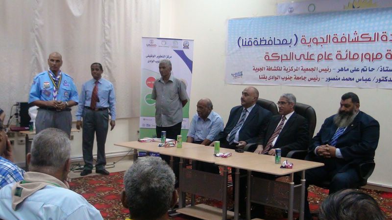 افتتح الدكتور عباس منصور رئيس الجامعة والأستاذ محمد فنجرى وكيل وزارة الشباب والرياضة والأستاذ حاتم على ماهر رئيس الجمعية المركزية للكشافة الجوية للاتحاد العام للكشافة والأستاذ أسامة عبد الراضي مدير إدارة الجوالة بجامعة جنوب الوادي فعاليات الدراسة الرسمية لقادة الجوالة والكشافة للحصول على وسام الشارة الخشبية للقطاعين الخامس والسادس على مستوى الصعيد خلال الفترة من 20-10الى 24-10بقوة 80جوال وأعرب الدكتور عباس منصور رئيس الجامعة عن سعادته بجوالي الصعيد وقاداتهم مؤكدا أنهم نواة مثمرة وخيرة شباب مصر والحياة الكشفية تكسب كل منا مهارة الانتماء والتعلم والاعتماد على النفس وحب الوطن وحمايته وأضاف الأستاذ حاتم ماهر رئيس الجمعية المركزية للكشافة الجوية حيث قدم الشكر لكافة المشاركين فى الدورة ونقل تحيات المهندس خالد عبد العزيز وزير الشباب والرياضة كما قدم الشكر للدكتور عباس منصور رئيس جامعة جنوب الوادي على دعمه المعنوي المستمر واستضافة اى نشاط للجوالة والكشافة كما قدم الشكر للأستاذ محمد فنجرى على جهوده الملموسة اتجاه اتحاد الكشافة وتلبيته لاى احتياجات للكشافة على مستوى قنا ، كما أضاف الأستاذ أسامة عبد الراضي مدير إدارة الجوالة بالجامعة أن الجامعة دائما تسعد باستضافة اى نشاط للجوالة والكشافة مشيرا إلى الدور الكبير الذي يقوم به الدكتور عباس منصور رئيس الجامعة لدعم أنشطة الحركة الكشفية والجوالة في الجامعة مؤكدا أن مخيم الجوالة الموجود بالجامعة من اكبر المخيمات بالوطن العربي .