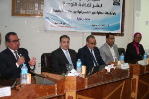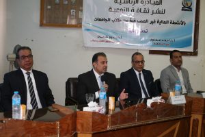 في اطار المبادرة الرئاسية لنشر ثقافة التوعية بالأنشطة المالية غير المصرفية بين طلاب الجامعات وفي ضوء بروتوكول التعاون المبرم بين المجلس الاعلى للجامعات والهيئة العامة للرقابة المالية شهد الدكتور احمد عكاوي رئيس جامعة جنوب الوادي بدء سلسلة الندوات التوعوية بالأنشطة المالية غير المصرفية لتعزيز الوعي المالي غير المصرفى بين طلاب جامعة جنوب الوادي والتي تقام تحت رعاية سيادته ورعاية الدكتور بدوي شحات نائب رئيس الجامعة لشئون التعليم والطلاب حيث أقيمت أولى هذه الندوات بكلية الآداب، وجاء ذلك بحضور الدكتور محمد سعيد نائب رئيس الجامعة لشئون خدمة المجتمع وتنمية البيئة، والدكتور وحيد الدين طاهر عميد كلية الآداب، والدكتور محمد يوسف الاستاذ بكلية التجارة ومنسق المبادرة بالجامعة،