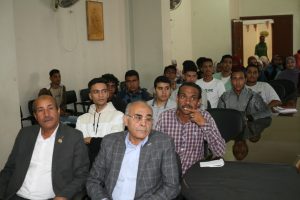 وحاضر في الندوة الدكتورة بخيته حامد ابراهيم الأستاذ المساعد بكلية الآداب ومدرب توعية مالية معتمد من الهيئة العامة للرقابة المالية وسط حشد من طلاب كلية الآداب.