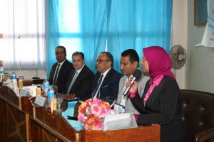 وفي كلمته قدم الدكتور وحيد الدين طاهر عميد كلية الآداب الشكر لرئيس الجامعة على ما يقوم به من مجهودات في سبيل تطوير العملية التعليمية وفى سبيل رفعة الجامعة والارتقاء بها .