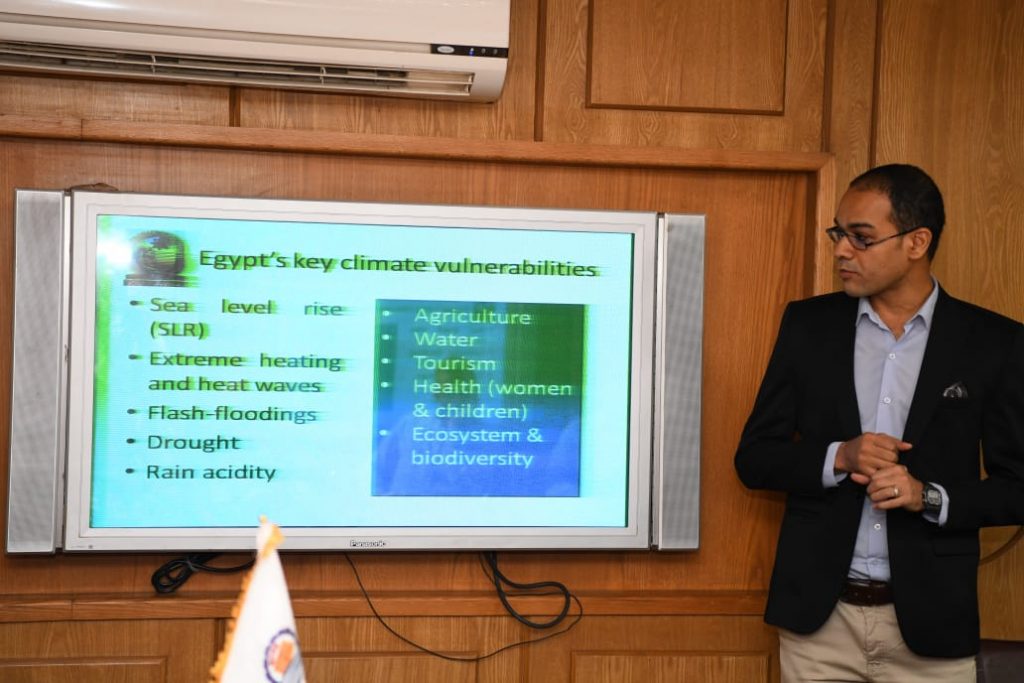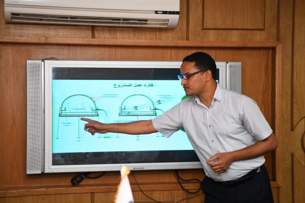 و اضاف نائب رئيس الجامعة لشئون خدمة المجتمع وتنمية البيئة ان وفد الجامعة المشارك فى اللقاء ضم الدكتور احمد ابوبكر عبدالوارث وكيل كلية الزراعة لشئون الدراسات العليا والبحوث والدكتور حموده محمد دردير الاستاذ المساعد بكلية الهندسة والدكتور احمد الشيخ المدرس بكلية الهندسة بتقديم مشروعات الجامعة للمساهمة في المبادرة الوطنية حول تطبيق تقنية النانو الأخضر في تغذية الحيوان والدواجن لاستدامة الإنتاج والمحافظة علي البيئة في ظل ظروف التغيرات المناخية و معالجة المياة المالحة و نظم الري الذكية و الذهب الأخضر..وشارك قسم الهندسة الميكانيكية بجامعة جنوب الوادي بعرض يشمل مشروعين تخرج لطلاب القسم وهما مقطر مياه شمسي لتحلية مياه البحر بهدف توفير مياه صالحه للشرب في المناطق الساحلية والنائية ويقع المشروع في تحقيق الهدف السادس من اهداف التنمية المستدامة “المياه النظيفة والنظافة الصحية “. كما عرض مشروع محطه انتظار اتوبيس ذكية وصديقة للبيئة وذلك باستخدام الخلايا الشمسية لتشغيل محطه الانتظار التي تشمل على تكييف وشاشات عرض للإعلانات والتي تقع في تحقيق الهدف الحادي عشر من اهداف التنمية المستدامة ” مدن ومجتمعات محلية مستدامه”.