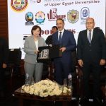 وفي ختام فعاليات الجلسة الافتتاحية، قامت الدكتورة سوسن بدر بتقديم درع المؤتمر إلى محافظ سوهاج ورؤساء الجامعات المشاركين، تقديرا لدورهم في دعم مسيرة التعاون العلمي وتعزيز التكامل بين مؤسسات التعليم العالي بإقليم جنوب الصعيد.
