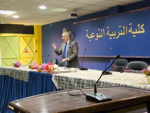 تحت رعاية الدكتور احمد عكاوي رئيس الجامعة والدكتور محمد سعيد نائب رئيس الجامعة لشئون خدمة المجتمع وتنمية البيئة واشراف الدكتورعمرو عبدالقادر محمود عميد كلية التربية النوعية اقيمت بكلية التربية النوعية ندوة بعنوان ” الفنون تتأثر وتؤثر ” بحضور الدكتورة بدريه حسن علي وكيل الكلية لشئون خدمة المجتمع وتنمية البيئة، حاضر فيها الدكتور طلعت عبد المتعال حسن شحاته رئيس قسم التربية الفنية بكلية التربية النوعية السابق و عميد كلية الفنون الجميلة بجامعة دلمون للعلوم والتكنولوجيا بمملكة البحرين سابقا