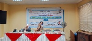 حاضر فى الندوة الدكتورة بدرية حسن وكيل كلية التربية النوعية لشئون خدمة المجتمع وتنمية البيئة