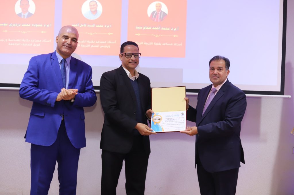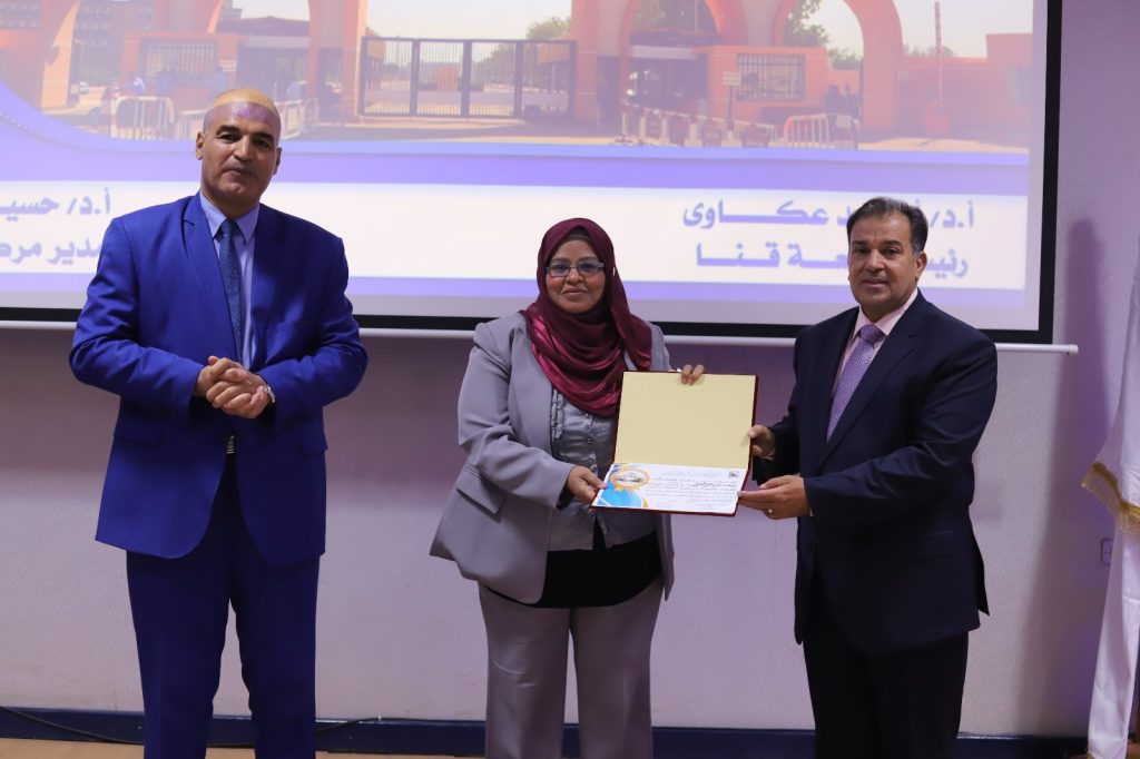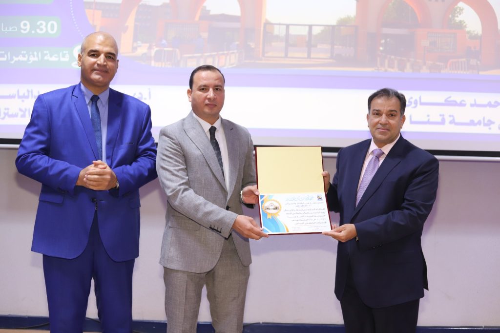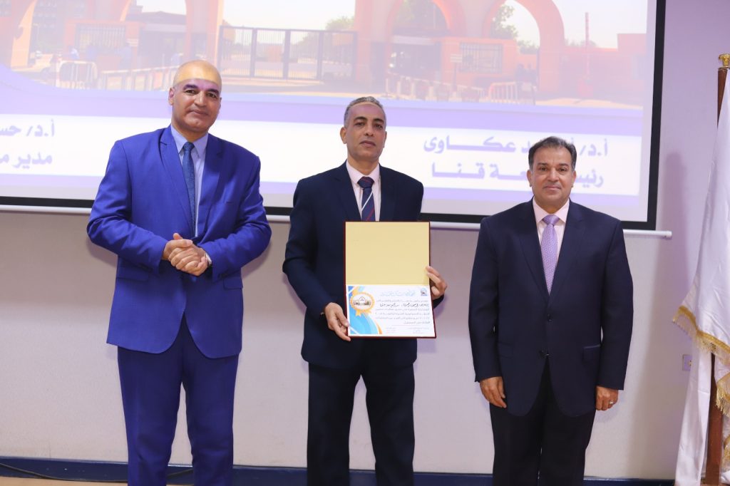 وفي ختام الاحتفالية، جرى تكريم الدكتور أحمد عكاوي رئيس جامعة قنا، والدكتور عباس منصور رئيس الجامعة الأسبق، ونواب رئيس الجامعة، وعمداء كليات ومعاهد الجامعة، وأمين الجامعة وأمين الجامعة المساعد، إلى جانب فريق إعداد الخطة الاستراتيجية، والإعلاميين، والأطراف المجتمعية المعنية، وقيادات الجهاز الإداري والعاملين به، فضلًا عن ممثلين عن طلاب الجامعة وخريجيها، وذلك تقديرا لجهودهم المخلصة ومشاركتهم الفاعلة في دعم مسيرة التطوير المؤسسي للجامعة وإنجاح إعداد الخطة الاستراتيجية.