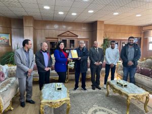 قامت الدكتورة شيماء القصاص رئيس مجلس ادارة جمعية تنمية وطن لتنمية المجتمعات المحلية بتكريم واهداء درع الجمعية للدكتور يوسف غرباوي رئيس الجامعة بحضور الدكتور احمد كمال نصاري نائب رئيس الجامعة لشئون خدمة المجتمع وتنمية البيئة والدكتور هشام عيسي مدير البرامج بمركز استشارات التنمية والمهندس اسعد محمد مدير مكتب جهاز البيئة في محافظة قنا.