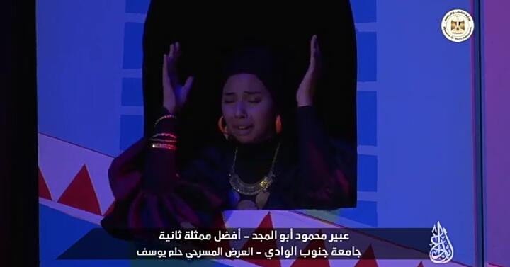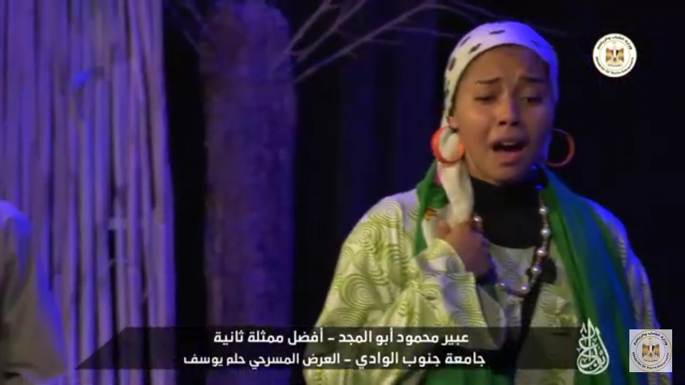 و اضاف الدكتور محمد ابو الفضل بدران نائب رئيس الجامعة لشئون التعليم و الطلاب الى فوز عبير محمود أبو المجد الفرقة الثانية بكليه الحقوق على افضل ممثله ثانيه في مجال العروض المسرحية عن عرض حلم يوسف