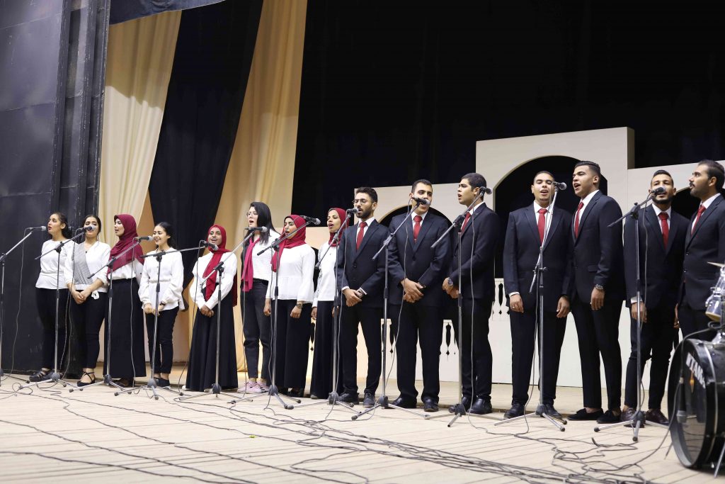 وقدم فريق كورال التربية النوعية عدة فقرات منها ( إلى رحاب يثرب “جماعى” – سألونى الناس للطالبة رحاب عبدالشافى – دنجى “جماعى” – كعب الغزال للطالب مخلص ناصح – اخد حبيبى للطالبة سهيلة عبدالجليل – أم إسماعيل “جماعى” دويتو ” أمانى وجدى – بسنتى ” – مصر التى في خاطرى للطالبة ليديا هانى – الأروام “جماعى” )