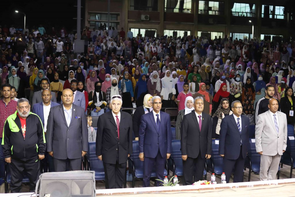 وقدم الدكتور بدوى شحات نائب رئيس الجامعة لشئون التعليم والطلاب، الشكر لفريق الكورال ومنتخب الجامعة الفنى على الأداء الراقى الذى ظهرت به كافة المواهب المتميزة لطلاب الجامعة، وأكد أن رئيس الجامعة يولى إهتمامًا كبيرًا ودعم كامل للأنشطة الطلابية مع الحرص على تكريم كل من يعلى من اسم الجامعة .