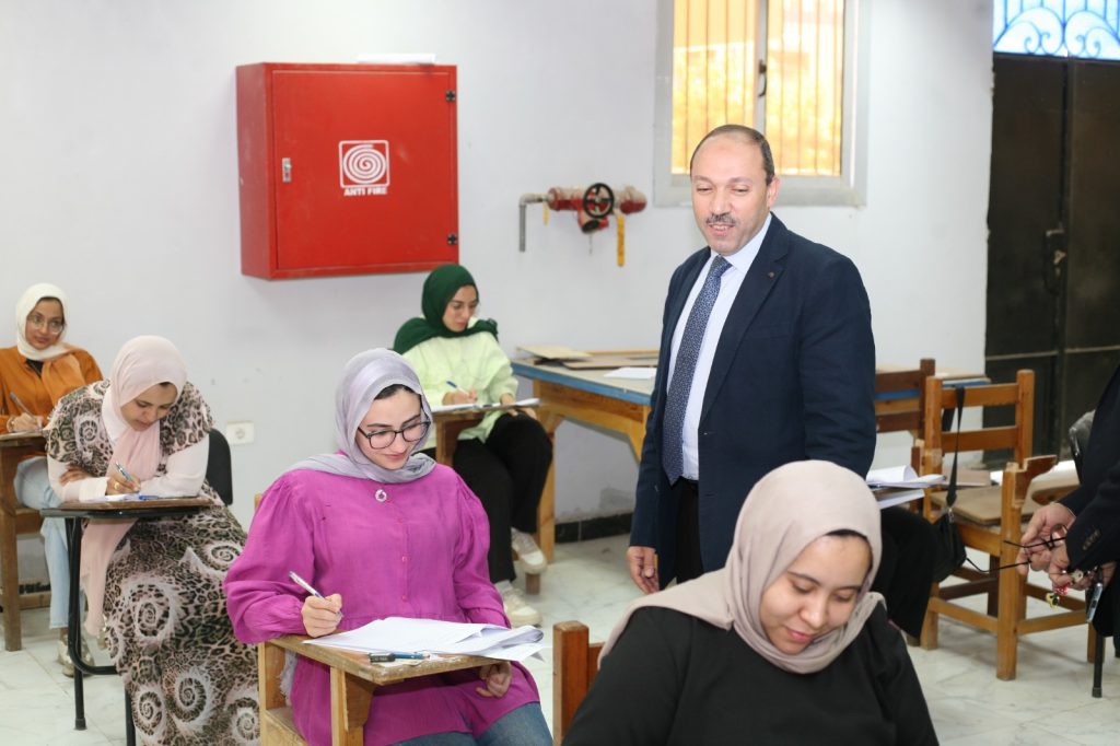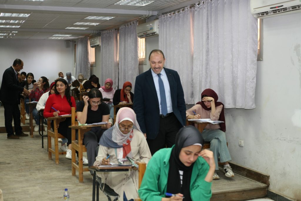 في اطار توجيهات الدكتور احمد عكاوي رئيس جامعة جنوب الوادي بالمتابعة المستمرة لأعمال الامتحانات بكليات الجامعة، وفي ضوء اعمال اللجنة العليا لمتابعة اعمال الامتحانات بالجامعة للفصل الدراسي الثاني للعام الجامعي ٢٠٢٤/ ٢٠٢٥ برئاسة الدكتور احمد عكاوي رئيس الجامعة، وعضوية كلا من الدكتور محمد سعيد نائب رئيس الجامعة لشئون خدمة المجتمع وتنمية البيئة، و الدكتور محمد وائل عبدالعظيم نائب رئيس الجامعة لشئون الدراسات العليا والبحوث، قام الدكتور محمد وائل عبدالعظيم نائب رئيس الجامعة بجولة تفقدية لأعمال الامتحانات النظرية والشفوية لقسم جراحة الوجه والفم والفكين بكلية طب الفم والاسنان للاطمئنان على حسن سير الامتحانات و الالتزام بالقواعد المنظمة، جاء ذلك بحضور الدكتور احمد طلعت تميرك عميد الكلية، والدكتور الطيب عبدالرازق وكيل الكلية لشئون خدمة المجتمع وتنمية البيئة.