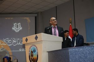 واشاد احمد عبد الرحمن ممثل الدفعة الحادية عشر بجهود اعضاء هيئة التدريس في كلية الطب للوصول لهذه اللحظة كما أثنى على أولياء الأمور الذين بذلوا الغالي والنفيس من أجل الأبناء . ثم قام نقيب الاطباء بترديد قسم الولاء على خريجي الدفعة الحادية عشر والبالغ عددهم 275 طبيب كما تم تبادل الدروع .