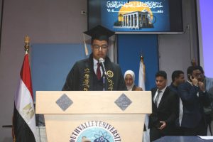 ونقل الدكتور بدوي شحات نائب رئيس الجامعة تحيات الدكتور احمد عكاوي رئيس الجامعة لخريجي الدفعة الحادية عشر من كلية الطب كما وجه التحية لأولياء الامور والاسر الموجودة بالحفل وأعرب نائب رئيس الجامعة عن سعادته بتخرج دفعة جديده من ابناء الكلية مؤكدا على ان خريجي طب جنوب الوادي منافس قوي وحقيقي في سوق العمل وذلك لتمتعهم بالخبرات والمهارات الاكاديمية والعملية المختلفة كما اشار بأن مهمة الطب تعد من المهن الانسانية السامية والنبيلة داعيا الخريجين ان يضعوا المرضى نصب أعينهم وان يلتزموا بحسن معاملتهم وتقديم العون لهم .