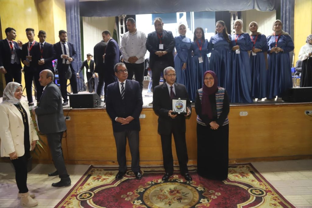 وقام الدكتور بدوي شحات نائب رئيس الجامعة لشئون التعليم والطلاب و الدكتور محمد سعيد نائب رئيس الجامعة لشئون خدمة المجتمع وتنمية البيئة بتسليم الدروع وشهادات التقدير لرؤساء وفود الفرق المشاركة