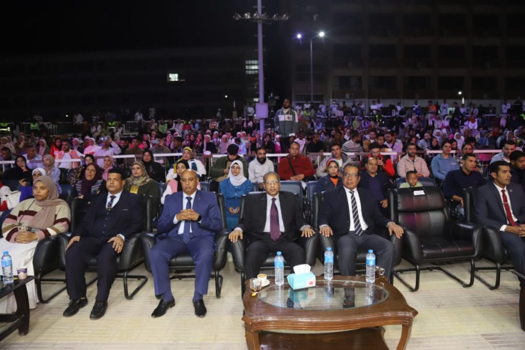 شهد فعاليات حفل الختام الدكتور بدوي شحات نائب رئيس الجامعة لشئون التعليم والطلاب، الدكتور محمد سعيد نائب رئيس الجامعة لشئون خدمة المجتمع وتنمية البيئة، الدكتور أشرف موسى عميد كلية التربية الرياضية و المشرف على الملتقى الفني والدكتور وائل بكري عميد كلية الآثار ولفيف من اعضاء هيئة التدريس ومعاونيهم وحضور طلابي كبير