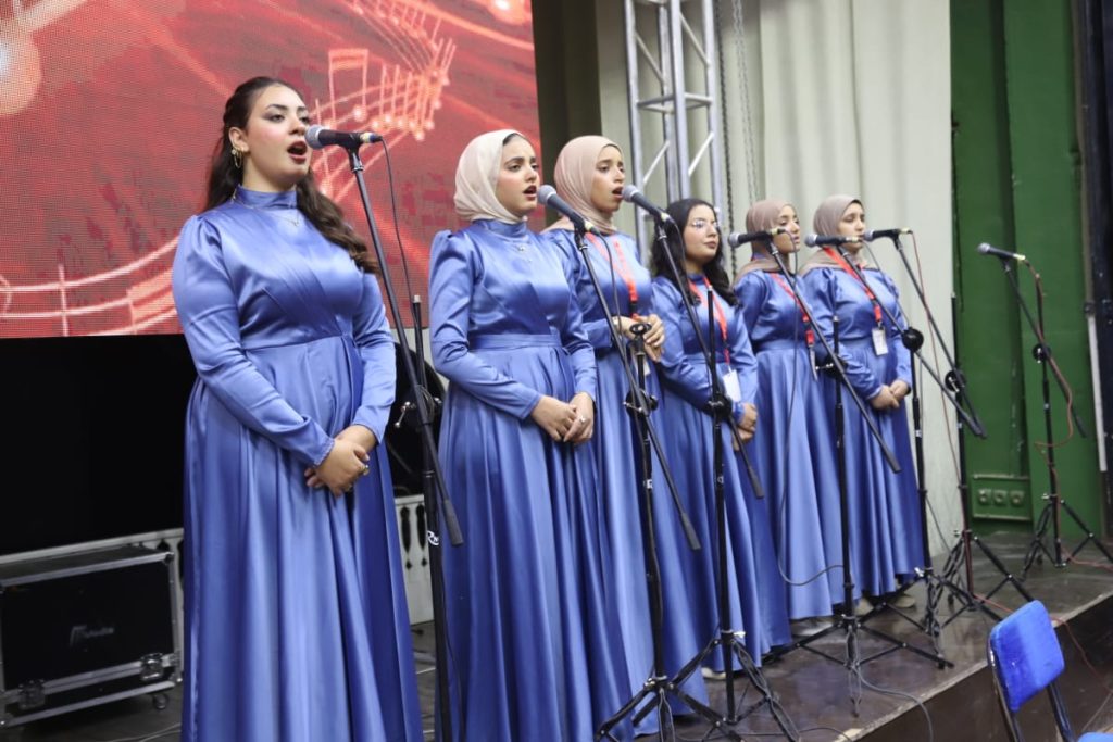 وتضمنت فعاليات حفل الختام فقرات موسيقية لفريقي الموسيقى والكورال بجامعتي اسيوط وجامعة جنوب الوادي