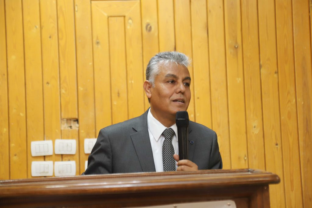 وتحدث عن دعم الدوله للجامعه فى انشاء مبنى للاختبارات الالكترونيه يسع ٦ الاف طالب فى الامتحان الواحد وتم البدء فى انشاءه بتكلفه نصف مليار جنيه ,