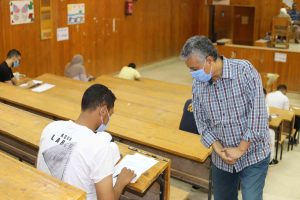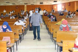 وأكد رئيس الجامعة على أهمية تطبيق كافة الإجراءات الاحترازية، بداية من قياس درجة حرارة الطالب قبل الدخول من بوابة الكلية، ومرورًا ببوابات التعقيم، مع مراعاة ارتداء الكمامات الطبية ووجود مسافة التباعد بين الطلاب داخل اللجان وعدم تبادل أدوات الطلاب والقيام بالتعقيم والرش بصفة دائمة.