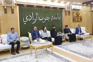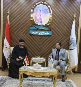 ومن جانبه قدم القمص والوفد المرافق له تهنئة الانبا شاروبيم مطران قنا وتوابعها لأسرة جامعة جنوب الوادي بمناسبه حلول عيد الاضحى المبارك واعرب عن سعادته بهذه الزيارة والتي تعبر عن عمق اواصر المودة والترابط بين ابناء الشعب المصري