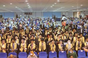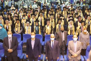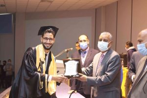 أعرب الدكتور يوسف غرباوي رئيس الجامعة عن سعادته بتخريج الدفعة السابعة مؤكداً أنها تعد مجهوداً من مجهودات الجامعة فى خدمة الوطن ، وأكد أن الحصول على الشهادة ليست نهاية المرحلة فى دولة حديثة تهتم بتطوير منتجها بالخبرات والتدريب ، كما أشار إلى أن الدولة استثمرت فى عقول خريجيها بالتمويل والتأهيل والإعداد، ولذا فهى تنتظر المردود بخدمة الوطن وتقديم كل نقطة عرق من أجل إعلاء شأنه .. وأضاف رئيس الجامعة بأن ما تلقاه خريج كلية الطب فى قاعات الدرس جدير بأن يعد طبيباً ناجحاً وهذا دور الجامعة التى تؤهل المواطن الصالح المنتمى ، ودعا خريجى الدفعة السابعة فى ظل وجود جائحة كورونا إلى العمل المنضبط وعدم التخاذل والوقوف فى الصف الأول ، ووجه رئيس الجامعة تحيته إلى أسر الطلاب التى لها الدور الأكبر فى المثابرة والدعم النفسى والمادى .