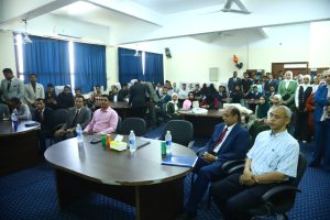 وفى نهاية الاحتفالية قام الدكتور ابراهيم الدسوقي عميد كلية الآداب الأسبق والأستاذ المتفرغ بالقسم بتقديم درع القسم للدكتور احمد عكاوي رئيس الجامعة تكريما وتقديرا لسيادته، وللدكتور وحيد الدين طاهر عميد كلية الآداب.