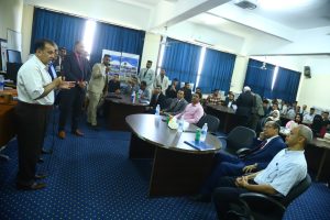 و شهد رئيس الجامعة عرض لمشروعات التخرج لطلاب القسم ولطلاب برنامج المساحة ونظم المعلومات الجغرافية بالقسم ومنها مشروع رسم للجامعة 3d على برنامج الارك برو حيث تم انشاء نموذج ثلاثي الابعاد شامل ومفصل للجامعة يظهر المباني الرئيسية والمساحات المفتوحة والبنية التحتية باستخدام احدث التقنيات في التصميم الثلاثي الابعاد والبرمجيات المتخصصة، ومشروع الرفع المساحي لشبكات البنية التحتية للجامعة، ومشروع مجسم الجامعة الأهلية (ماكيت)، وغيرها من المشروعات القيمة.