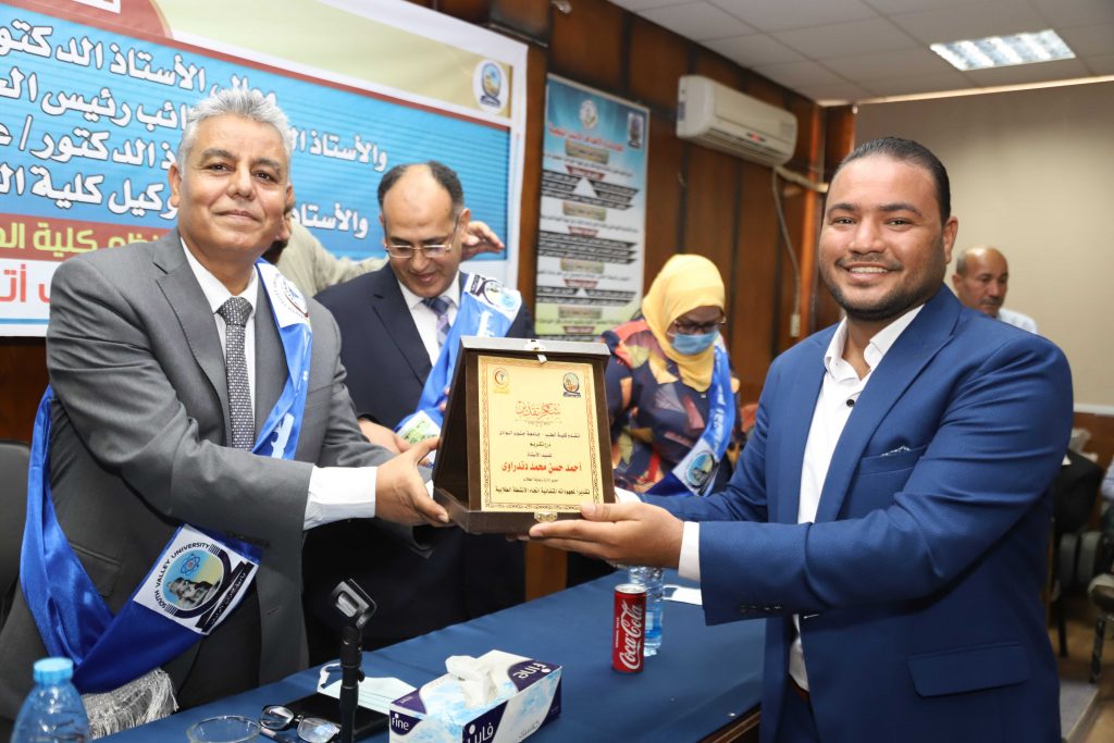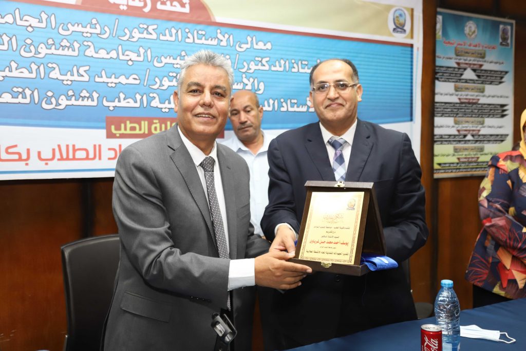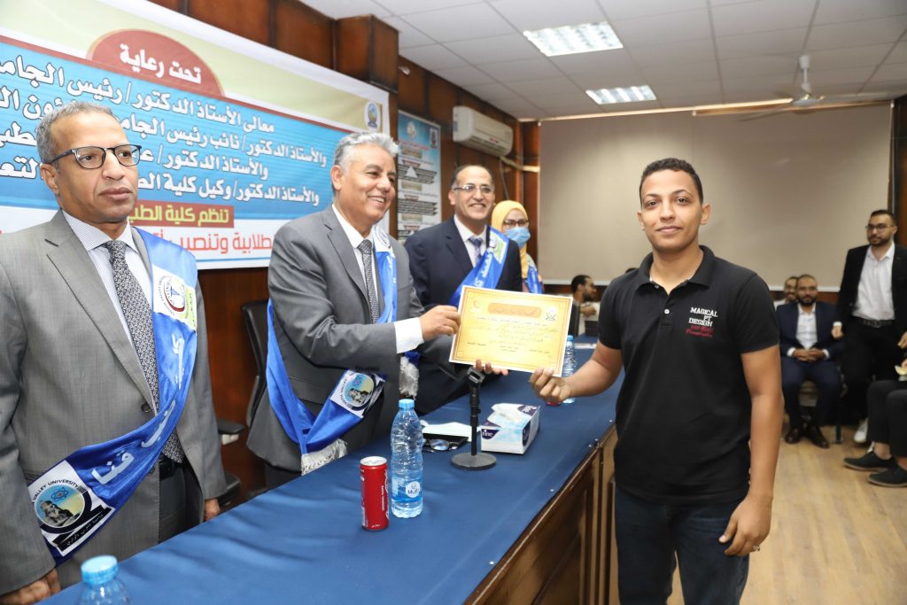 وفى نهاية الاحتفالية قام رئيس الجامعة ونائب رئيس الجامعة بتنصيب اتحاد طلاب كلية الطب وتكريم المتميزين في الانشطة الطلابية والمشاركين في حملات التبرع بالدم وأنشطة قطاع خدمة المجتمع والطلاب الحاصلين على جوائز في مسابقات الجامعة المختلفة