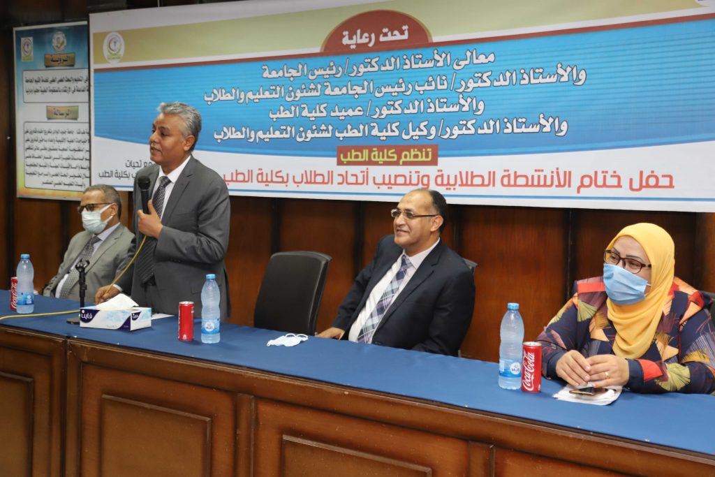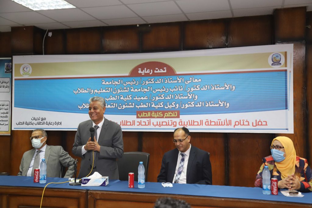 وأشار رئيس الجامعة على اهمية الانشطة الطلابية والتي تعد الرافد الثاني في بناء شخصية الطالب وخاصة طالب كلية الطب الذى يحتاج الى المشاركة الفعالة والتي تساعده بعد التخرج في التعامل مع المواطنين