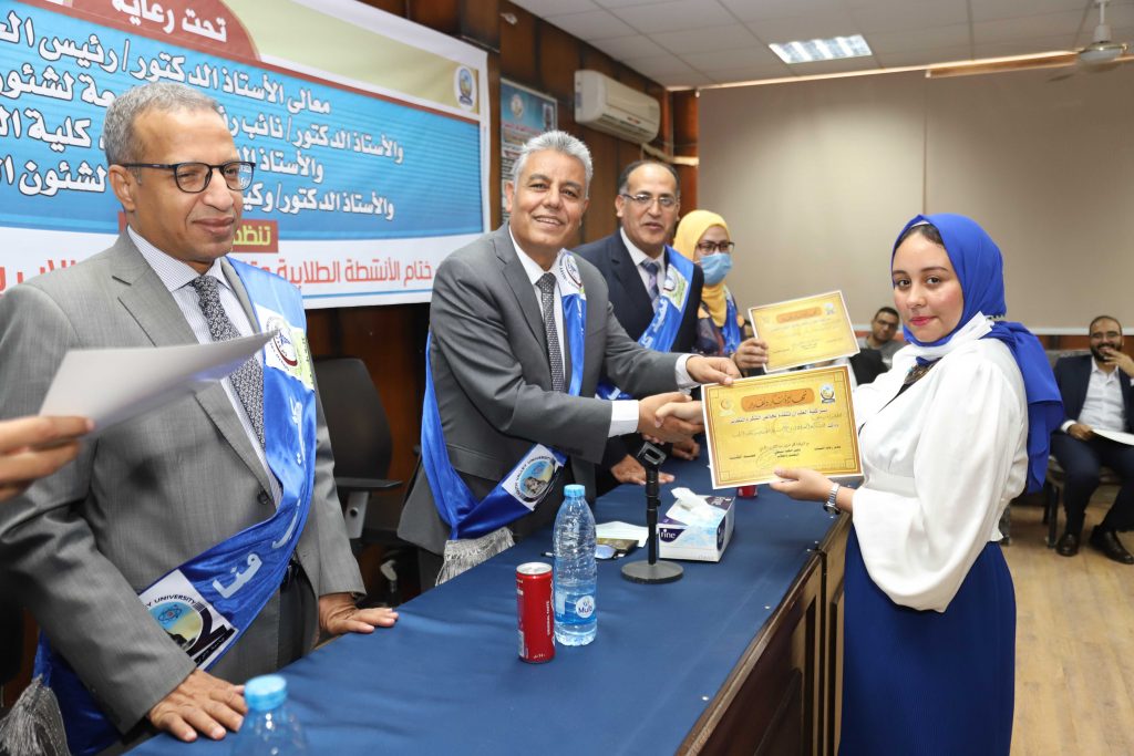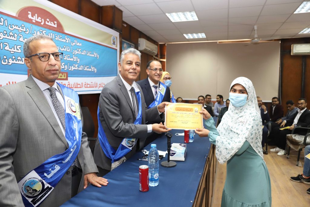 شهد الدكتور يوسف غرباوي رئيس جامعة جنوب الوادي حفل ختام الانشطة الطلابية وتنصيب اتحاد طلاب كلية الطب بحضور الدكتور بدوى شحات نائب رئيس الجامعة لشئون التعليم والطلاب و الدكتور على عبدالرحمن غويل عميد كلية الطب و الدكتورة حنان فايد وكيل الكلية لشئون التعليم والطلاب