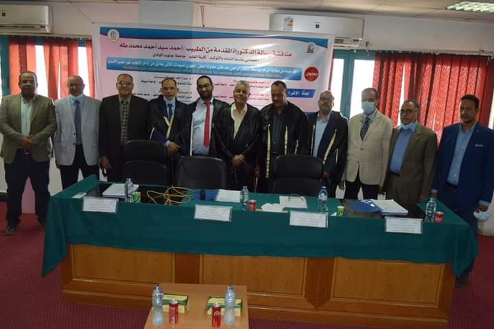 شهد الدكتور يوسف غرباوى رئيس جامعة جنوب الوادي رسالة الدكتوراه المقدمة من الطبيب احمد سيد احمد طه الأخصائي بقسم النساء والتوليد بالمستشفى الجامعي.