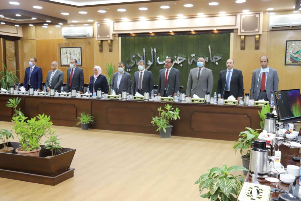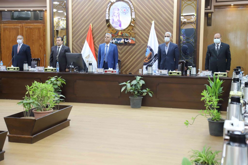 و اضاف رئيس الجامعة انه يتم ادارة المجلس من خلال تطبيق ( اجتماع) وهو تطبيق الكتروني من انتاج جامعة جنوب الوادي يدير الاجتماعات بطريقة ألية شاملة الارشفة الالكترونية و استرجاع البيانات و اعداد اجندة الاجتماعات