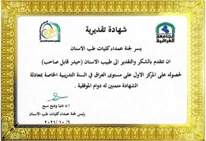 و اكد الدكتور احمد طلعت تميرك عميد كلية طب الفم والاسنان انه تم تكريم الدكتور حيدر قابل الجبوري من نقابة اطباء الاسنان بالعراق بحضور الدكتورة دينا وديع سبع نقيب اطباء الاسنان بالعراق