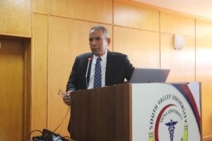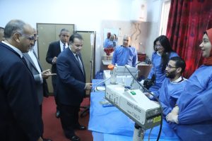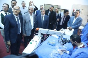 كما استمع رئيس الجامعة إلى شرح تفصيلي من الدكتور أحمد الدغيمي حول إمكانيات وتجهيزات قسم طب وجراحة العيون الجديد، وما يضمه من وحدات طبية متطورة تسهم في رفع كفاءة التشخيص والعلاج، إلى جانب دعم العملية التعليمية والتدريبية لطلاب كلية الطب والأطباء المقيمين.