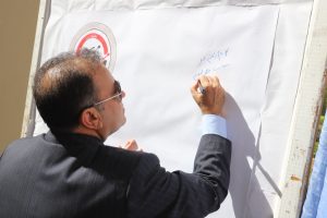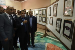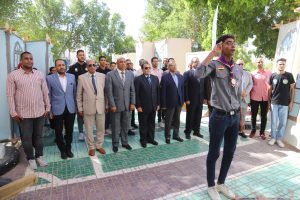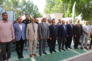 في بداية الاحتفال قام رئيس الجامعة ونواب رئيس الجامعة بتحية العلم وتفقد المعرض الفني والذي يضم العديد من اللوحات الفنية المتنوعة من اعداد طلاب كليه التربية الرياضية