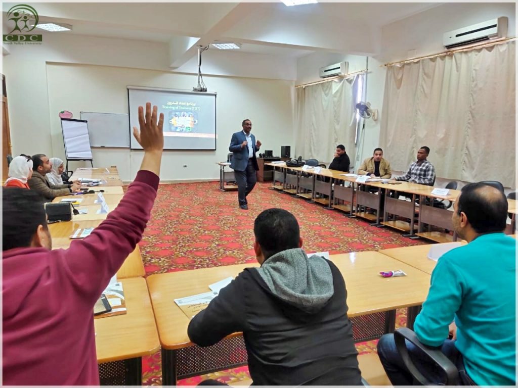 تحت رعاية الدكتور يوسف غرباوى رئيس جامعة جنوب الوادى و الدكتور أحمد كمال نصارى نائب رئيس الجامعة لشؤن خدمة المجتمع وتنمية البيئة يقدم مركز التطوير الوظيفى برنامج تدريب المدربين (TOT) المجموعة الثالثة بعد نجاح المجموعتان الأولى و الثانية بمشاركة 11 كلية.