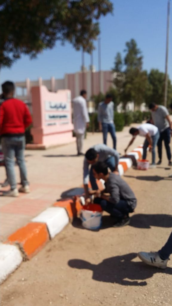 كما نظمت الكلية معسكرًا للخدمة العامة لتجميل مدخل الكلية حيث قام الطلاب بدهان البندورات امام الكلية ويأتى ذلك في اطار غرس القيم النبيلة والمحافظة على المنشآت العامة في نفوس طلاب الكلية