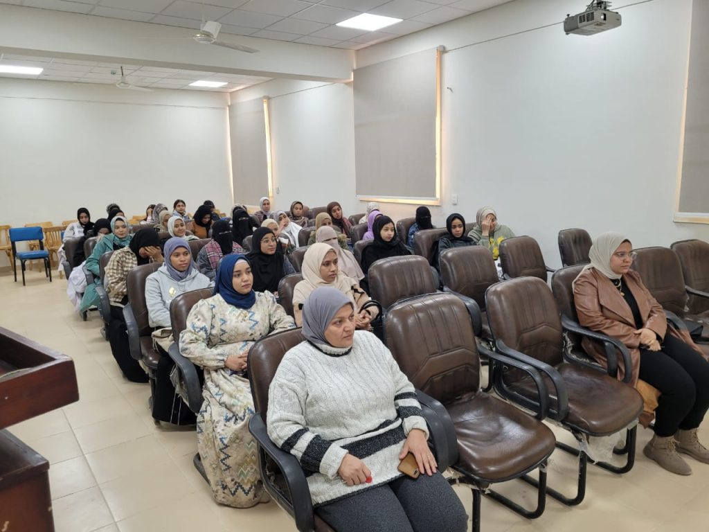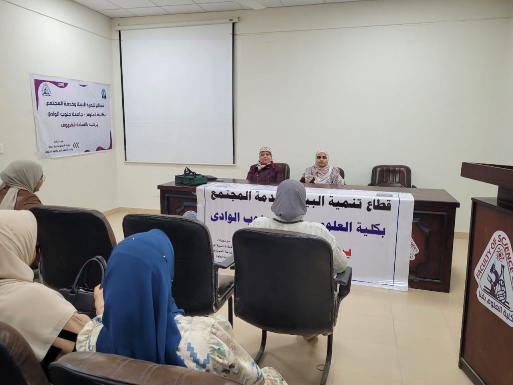 في اطار فعاليات الاسبوع البيئي السابع عشر والذي ينظمه قطاع خدمة المجتمع وتنمية البيئة بجامعة جنوب الوادي فى الفترة من ٢٣-٢٧ فبراير ٢٠٢٥ تحت رعاية الدكتور احمد عكاوي رئيس الجامعة واشراف الدكتور محمد سعيد نائب رئيس الجامعة لشئون خدمة المجتمع وتنمية البيئة حيث تضمنت فعاليات اليوم الثاني للأسبوع البيئي السابع عشر بكلية العلوم و بحضور الدكتور جمال عبد الله احمد عميد الكلية والدكتورة نهى احمد التايه وكيل الكلية لشئون خدمة المجتمع وتنمية البيئة ندوه بعنوان ” الفحص الذاتي للثدي” حاضر فيها الدكتورة ميرفت محمد حسن الاستاذ المساعد بقسم النساء والتوليد بكلية التمريض بالجامعة