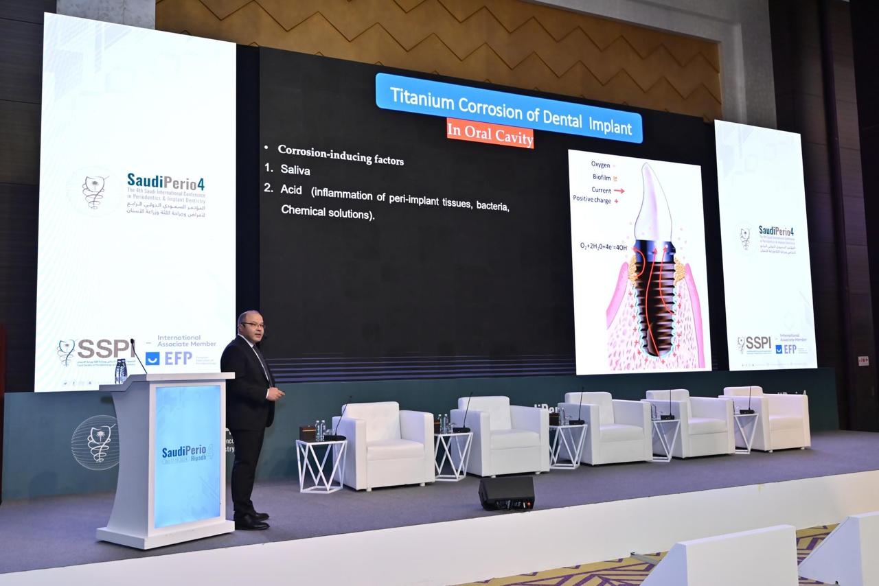وقام الدكتور عمر سليمان الاستاذ المساعد بكلية طب الفم والأسنان جنوب الوادي ووكيل الكلية لشئون الدراسات العليا والبحوث بإلقاء محاضرة بعنوان”Current evidence for regenerative approaches for per-implantitis”