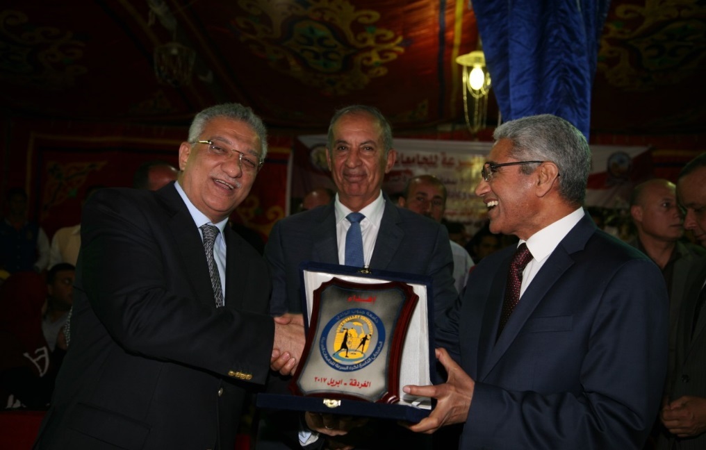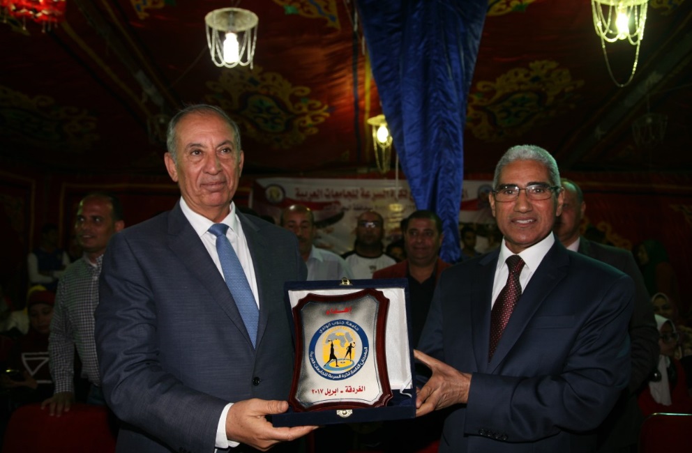 في نهاية الاحتفالية اهدى الدكتور عباس منصور رئيس الجامعة درع المهرجان لوزير التنمية المحلية السابق ومحافظ البحر الأحمر والدكتور صبحي حسانين ورئيس اتحاد كره السرعة والدكتور عرفة سلامة سكرتير عام الاتحاد الرياضي للجامعات والدكتور اسامه عمارة وكيل كليه التربية بالغردقة ..شهد الاحتفال الدكتور احمد كمال نصارى عميد كلية التربية الرياضية والدكتور محمود سيد عبد الصادق مسئول التوصل الطلابي وحشد كبير من طلاب الجامعات المشاركة وأهالي البحر الأحمر..
