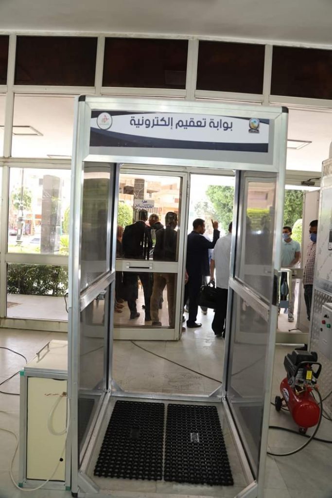 قدم اللواء اشرف الداودي محافظ قنا شكره لكلا من الدكتور يوسف غرباوي رئيس جامعة جنوب الوادي والدكتور جمال تاج عبد الجابر عميد كلية هندسة قنا وذلك لإهداء الجامعة بوابة تعقيم الكترونية تستخدم لتطهير وتعقيم المترددين علي مقر الديوان العام للمحافظة وذلك في إطار مجموعة الاجراءات الاحترازية التي تتخذها المحافظة للوقاية من فيروس كورنا المستجد (كوفيد – 19) .