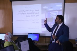 وأشار الدكتور طارق الكاشف مدير مركز ضمان الجودة بالجامعة بأن التدريب يأتي ضمن خطة الجامعة برئاسة الدكتور أحمد عكاوي رئيس الجامعة لرقمنة كافة عمليات ضمان الجودة والتأهيل للاعتماد بكليات وبرامج الجامعة، وأكد على أهمية وجود نظام إلكتروني خاص بالجودة بالكليات لما يمثله من نقلة نوعية في تطبيق نظام الجودة الداخلي بكليات وبرامج الجامعة وإدارة ملفات المعايير بما يأهلها للاعتماد، فالمنصات الالكترونية تمثل آلية تنظيمية متقدمة لإدارة وتيسير مهام فرق عمل معايير الاعتماد المؤسسي والبرامجي داخل الكليات، كما تُعد ركيزة أساسية في خطة الجامعة لتحقيق الاعتماد المؤسسي لها.