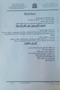 حيث تسلم أوراق المتسابقات المشاركات الى الكليات أو الادارات التابعين لها وتسلم مجمعة فى ادارة المشروعات البيئية فى موعد غايته 1 فبراير