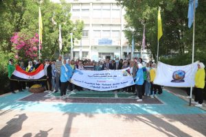 و نقل الدكتور احمد كمال نصاري نائب رئيس الجامعة لشئون خدمة المجتمع وتنمية البيئة تحيات رئيس الجامعة للطالبات المشاركات في المسيرة مشيرا الى حرص الجامعة على دعم طلابها في مختلف المجالات و اضاف ان وحدة مناهضة العنف ضد المرأة تقوم بالعديد من الانشطة و الفعاليات التي تدعم المرأة وحث الطالبات على المشاركة في مختلف فعاليات الوحدة لمعرفة الحقوق و الواجبات و الاستفادة من اوجه الدعم المختلفة حيث تقوم الوحدة بالتنسيق مع مختلف المؤسسات و الجهات المعنية بقضايا المرأة