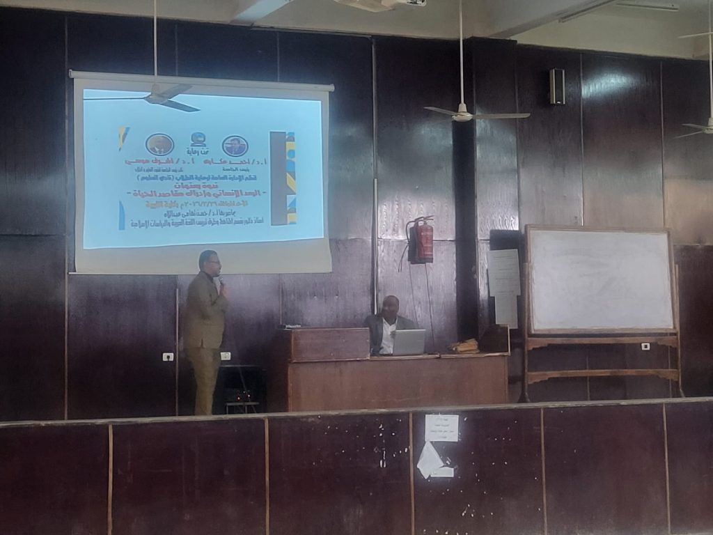 حيث قدم الدكتور حسن تهامي عبد اللاه استاذ المناهج وطرق تدريس اللغة العربية والدراسات الإسلامية ووكيل كلية التربية بجامعة الاقصر لشئون خدمة المجتمع وتنمية البيئة محاضرة شاملة تناولت دور القيم والمقاصد الشرعية في توجيه الفتوى لمواجهة تحديات الحياة المعاصرة (الفقر، الجهل، الصحة). وتركز على ترجمة مبادئ الكرامة الإنسانية إلى آليات عملية و تعزيز البعد الإنساني و إدراك مقاصد الحياة .